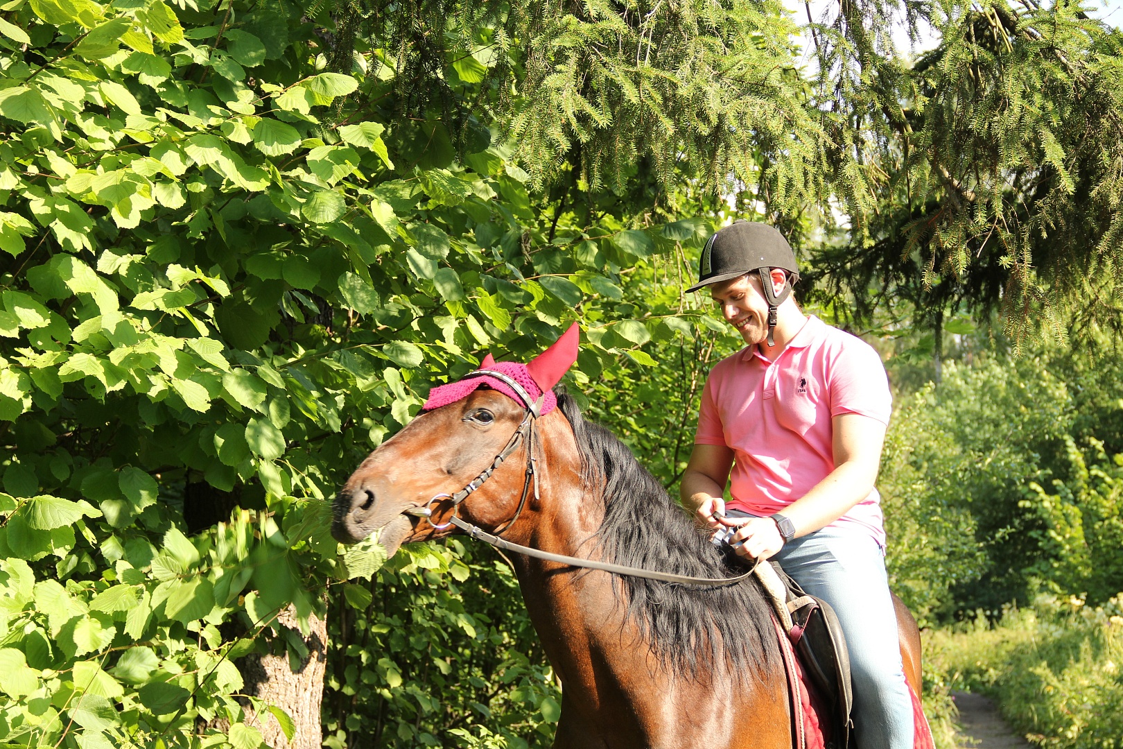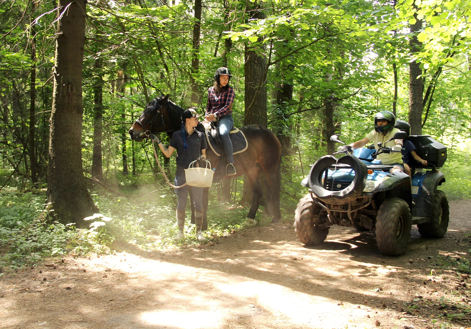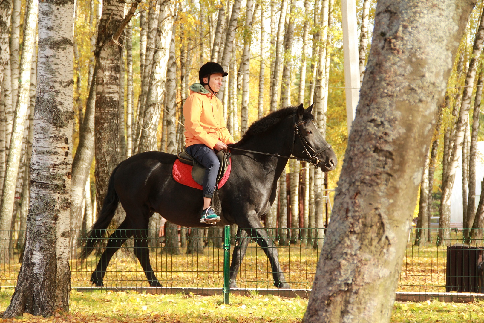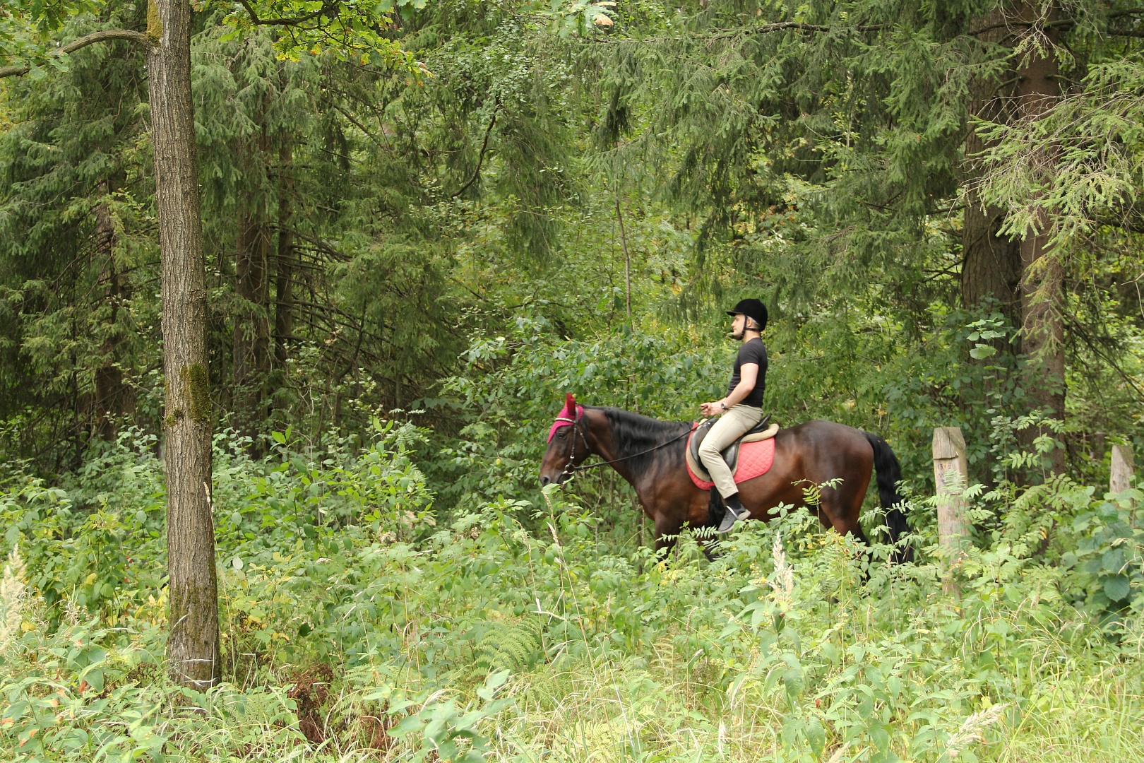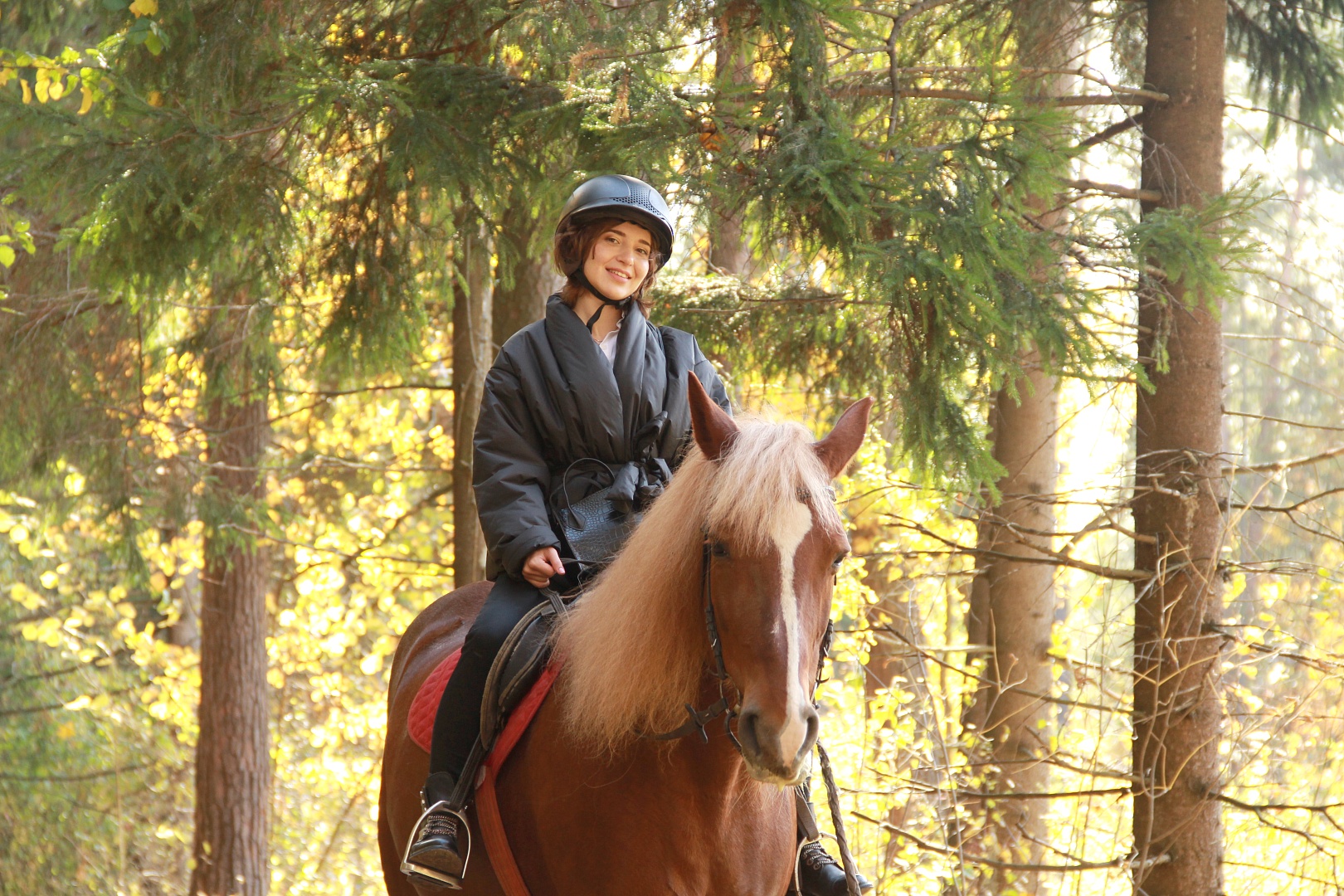 — Часовая конная прогулка в лес. В программу конной прогулку входит инструктаж, мастер-класс по управлению лошадью и групповой выезд в лес верхом на лошадях в сопровождении инструктора.