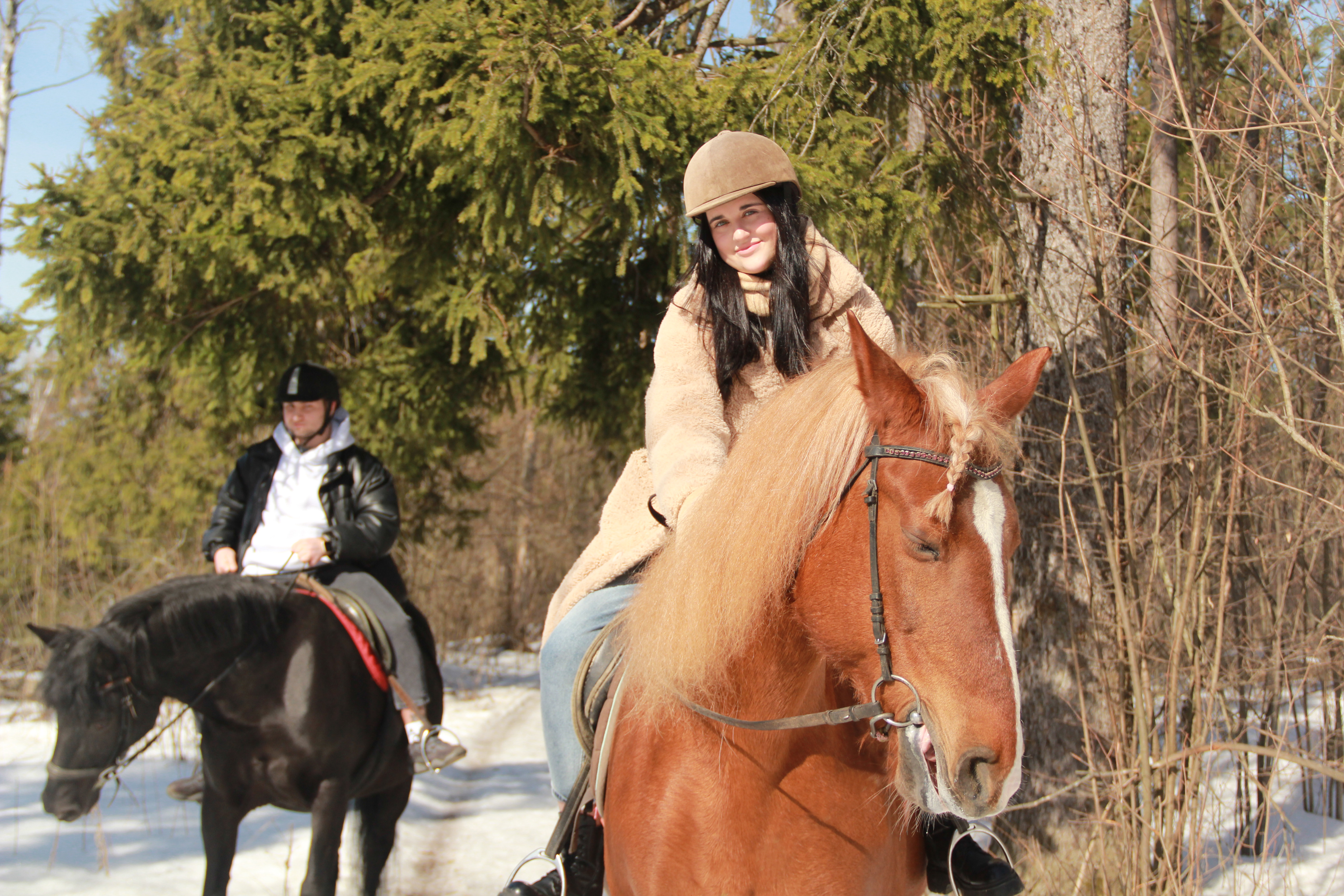 После получения инструктажа вся группа выезжает в лес под руководством инструктора. Каждый участник маршрута самостоятельно едет верхом на выбранной ему лошади. Для детей младше 10 лет предусмотрен вариант прогулки верхом на пони. Детей в обязательном порядке сопровождает инструктор. По жалению участники прогулки могут заказать фотосопровождение профессиональным фотографом.