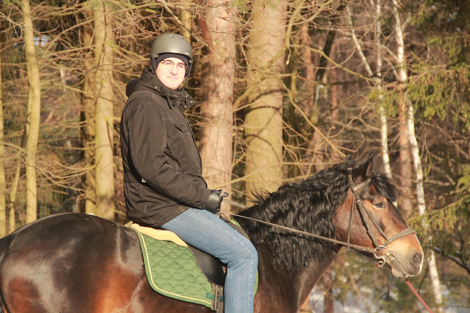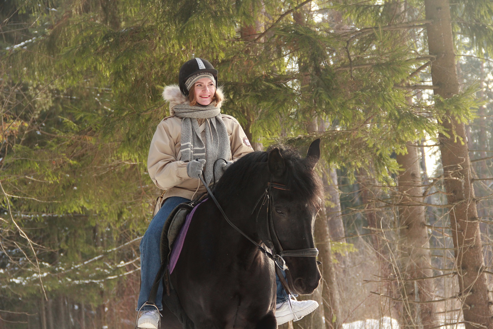 Вариант для более опытных наездников.  Групповой или индивидуальный выезд в лес по простому маршруту с возможностью порысить.